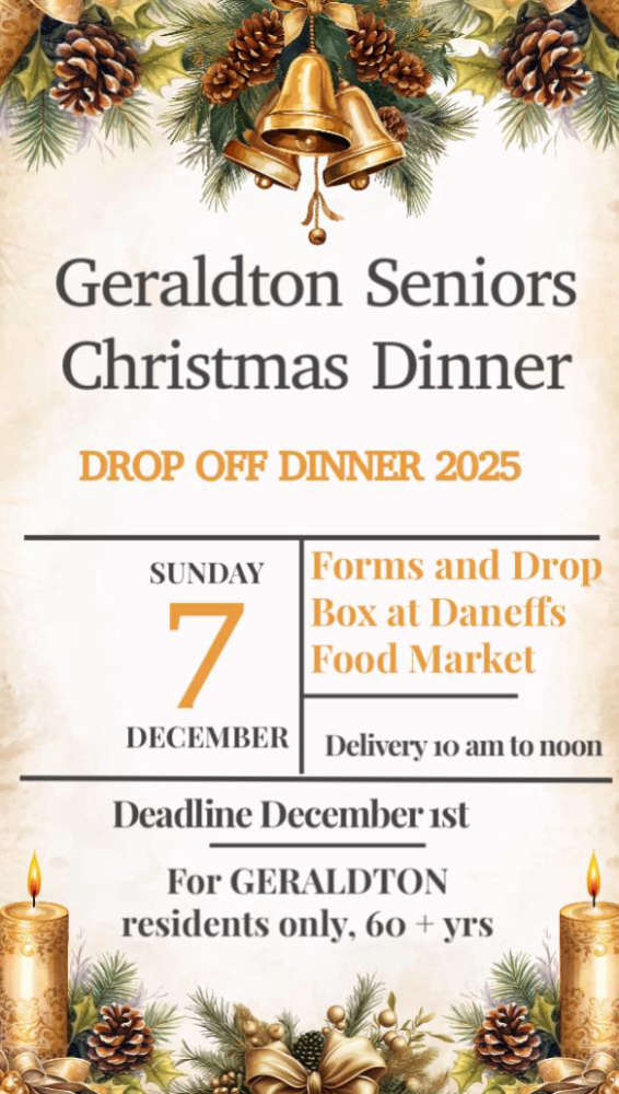 Geraldton Seniors Door Drop Christmas DinnerDecember 7th 2025
